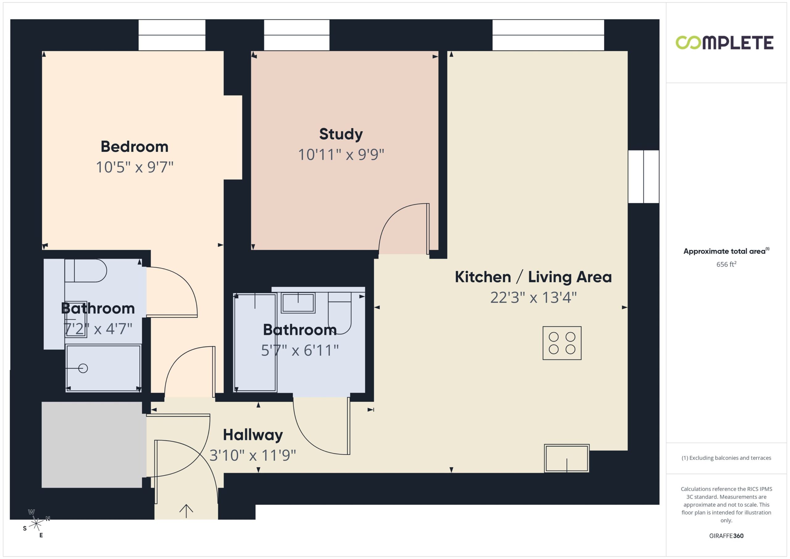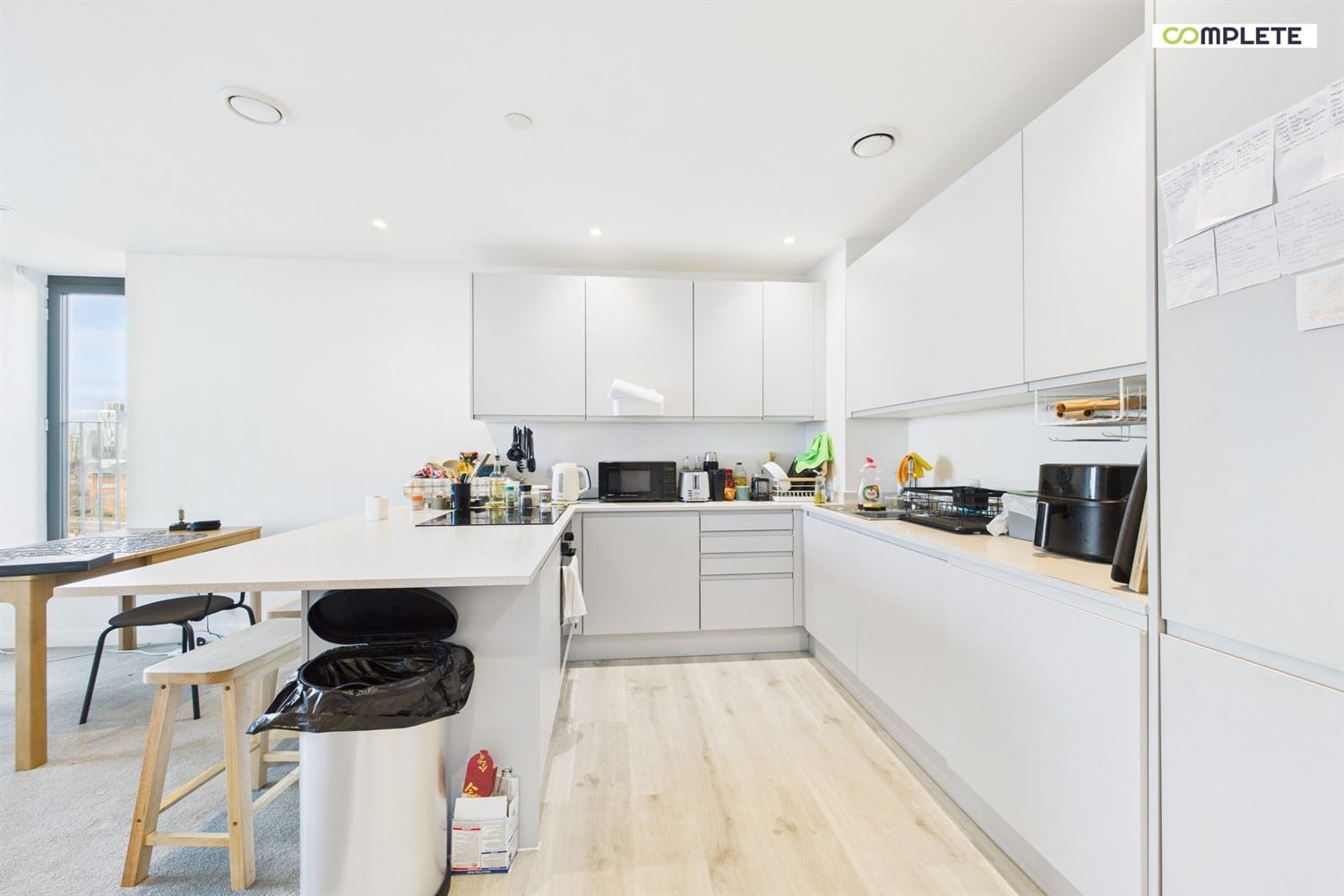 Located on the 4th floor, the property spans approximately 656 sq ft and features open-plan living spaces, an integrated kitchen with fully fitted appliances, floor-to-ceiling windows, electric heating, and access to a private roof terrace. The apartment boasts exceptional finishes and meticulous attention to detail throughout.